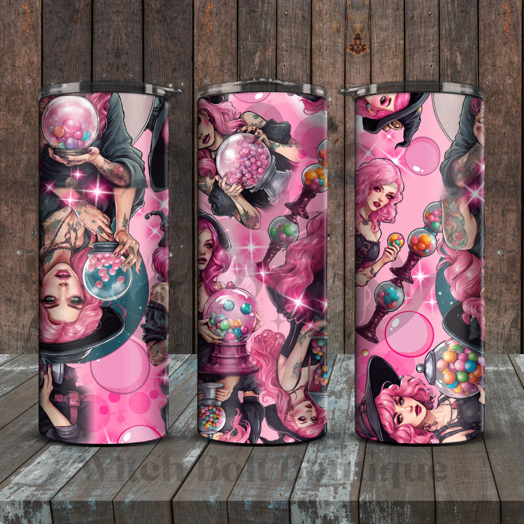 The Bubblegum Coven Tumbler is a vibrant addition to our Sweet Like Candy collection. Made of double walled stainless steel, it will keep your drinks at the perfect temperature. Plus, with its included straw and slide-closed lid, it's both functional and stylish. Complete your collection with the equally eye-catching Bubblegum Boos and Skellie Sweets tumblers.