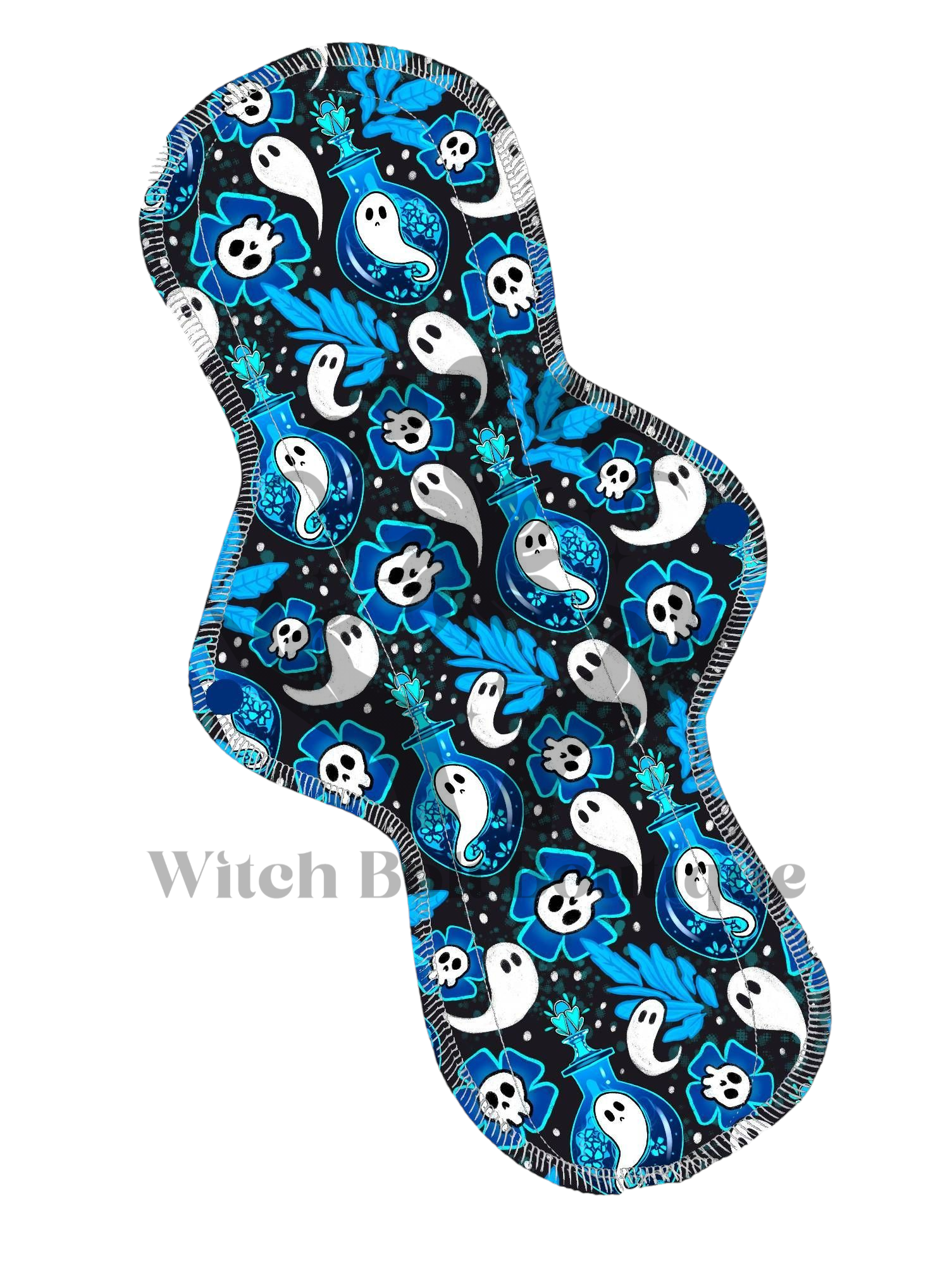 This listing is for one, smooth top, cloth pad or liner in the Cerulean Potion print.