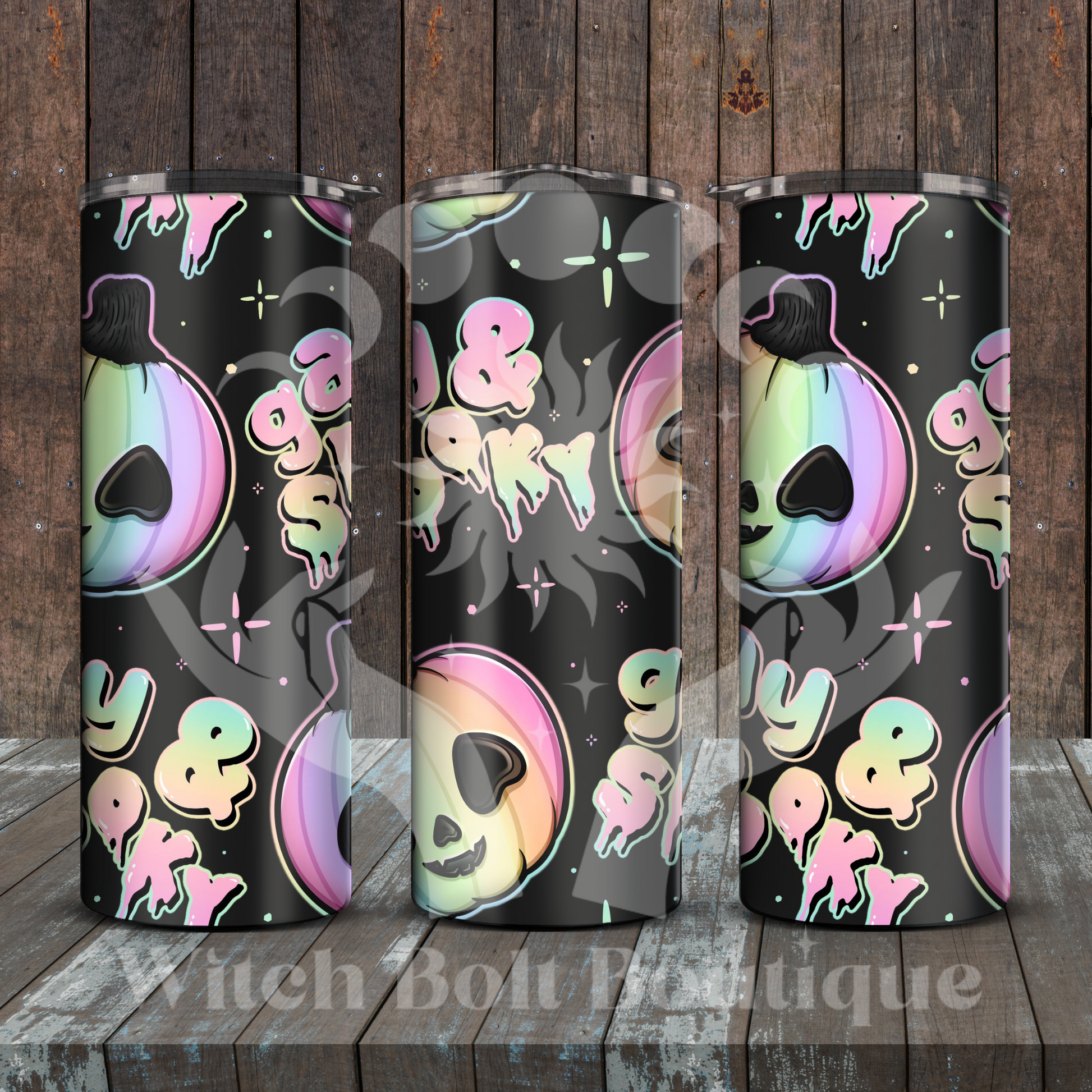 Celebrate Pride Month with the vibrant Gay and Spooky Tumbler. Crafted from double-walled stainless steel, it keeps your drinks hot or cold for hours, perfect for any occasion. Its bright colors make a bold statement, while the slide-closed lid and included straw offer convenient, spill-resistant sipping on the go. Stay refreshed and show your pride wherever you are.