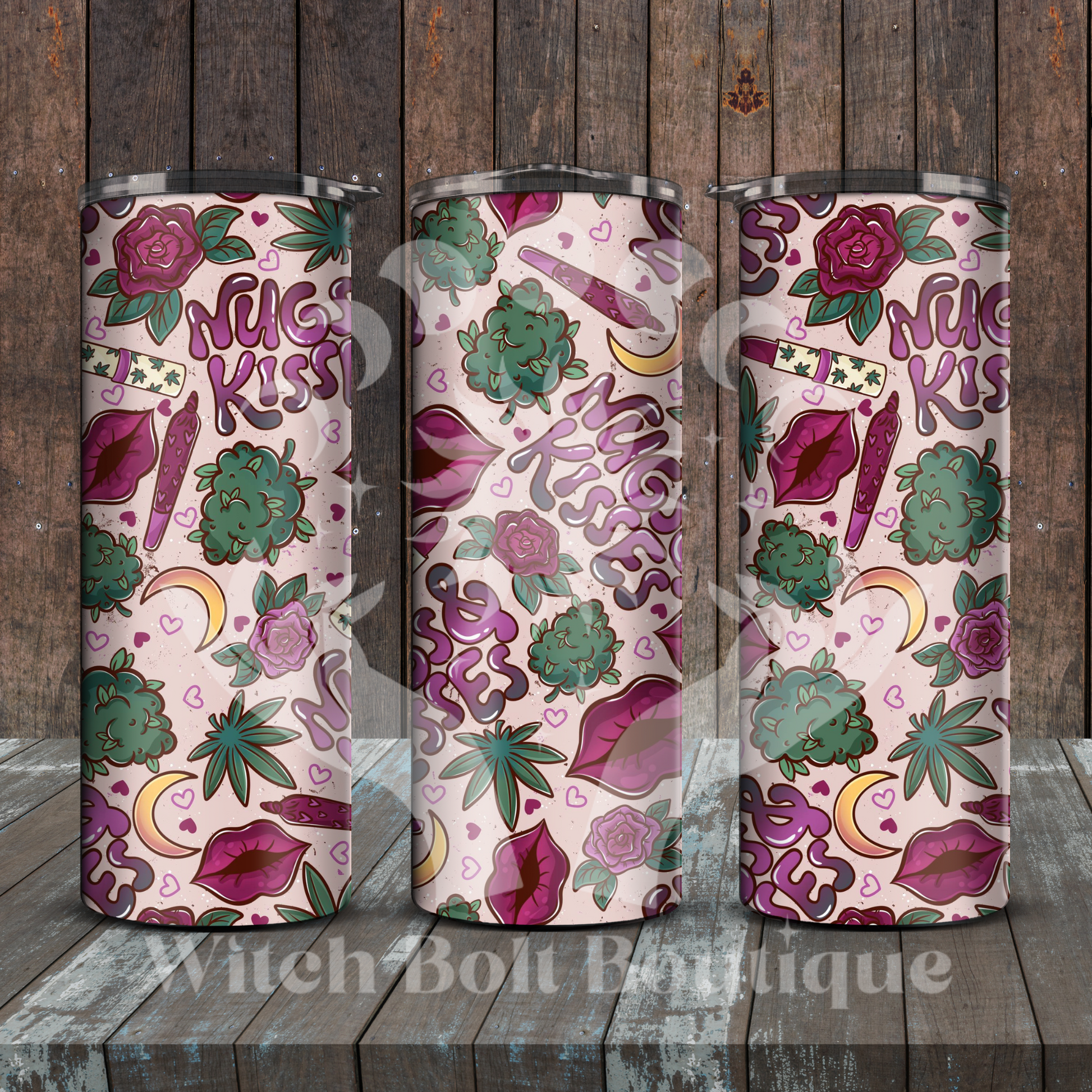 Elevate your hydration experience with our Nugs and Kisses Tumbler! Designed with double-walled stainless steel, it keeps your beverage hot or cold for hours. Celebrate this year's 420 with our marijuana themed tumblers, available in beautiful pastel colors. The included straw and slide closed lid make it perfect for on-the-go sipping.