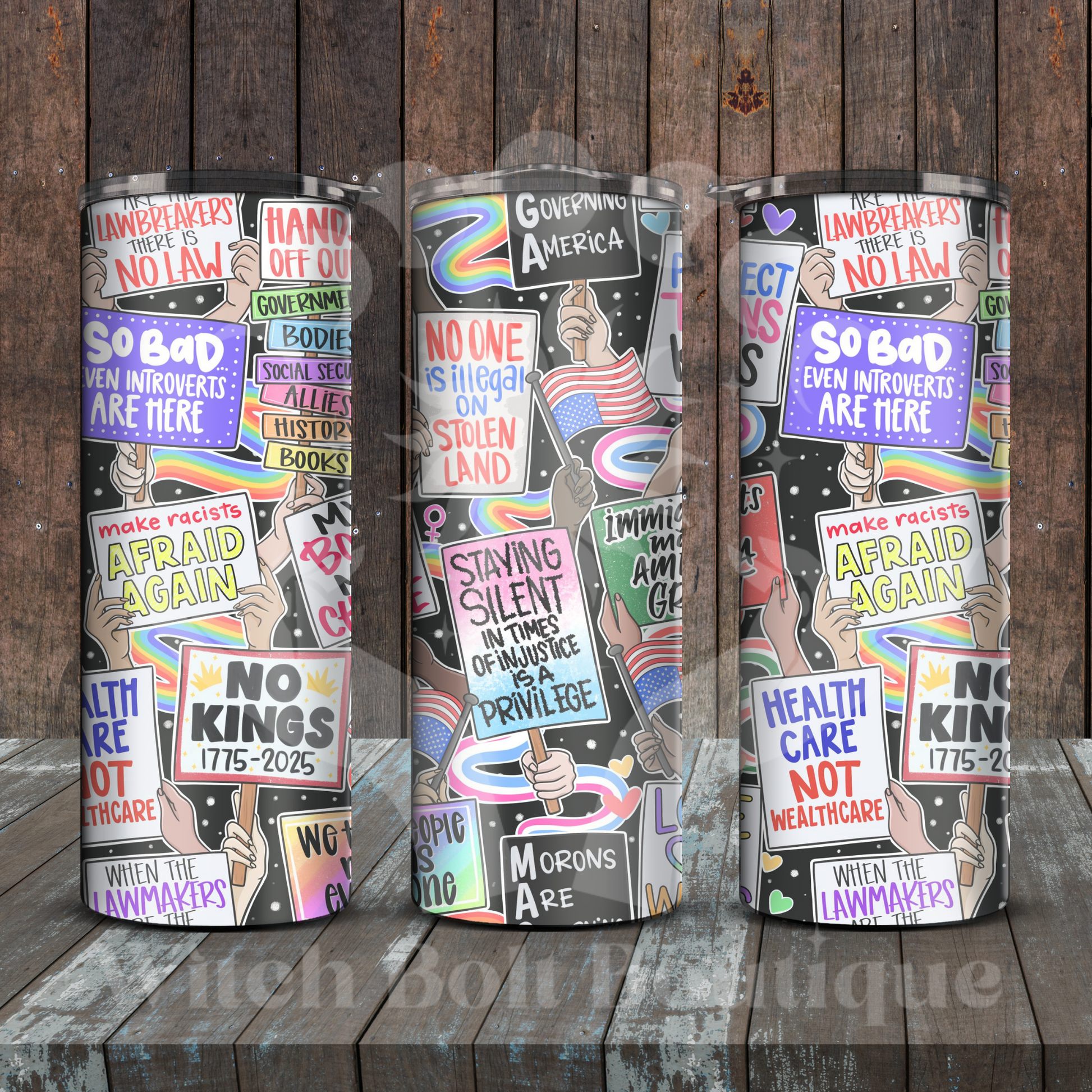 The Political Signs Tumbler is your perfect companion for protests and everyday activism. Made from stainless steel with double-wall insulation, it keeps your beverages hot or cold for hours. Featuring a straw and a slide-closed lid, it’s designed to prevent spills while you stay refreshed and focused. Celebrate No Kings Day and stand strong with a tumbler that matches your passion for change.
