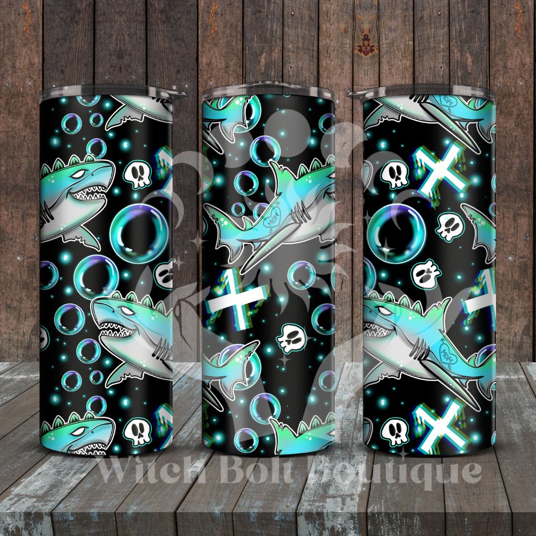 Introducing the Shark Tumbler - the ultimate double-walled, stainless steel tumbler that keeps your drinks hot or cold for hours! This stunning tumbler from the Under The Sea Collection features 4 breathtaking sea creature prints in vivid, full saturation color. And with its convenient slide-closed lid and straw, you can enjoy your drinks on-the-go with ease. Don't miss out on the stylish and practical addition to your everyday routine. Order yours now!