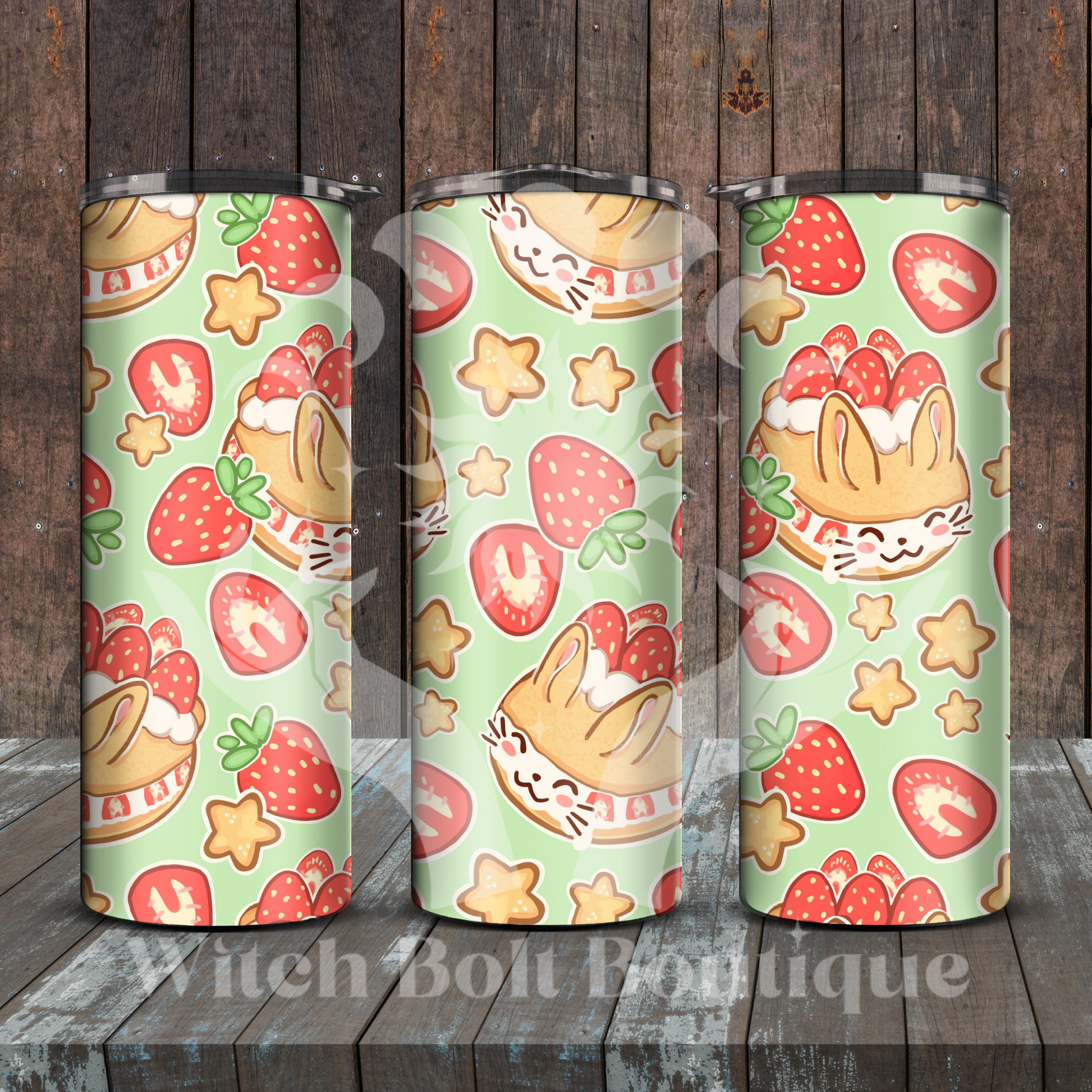 Experience the perfect spring design with our Strawbunny Shortcake Tumbler. This playful and double-walled stainless steel tumbler keeps your drinks hot or cold for extended periods of time. Enjoy the convenience of a slide-closed lid and a straw included with your tumbler.
