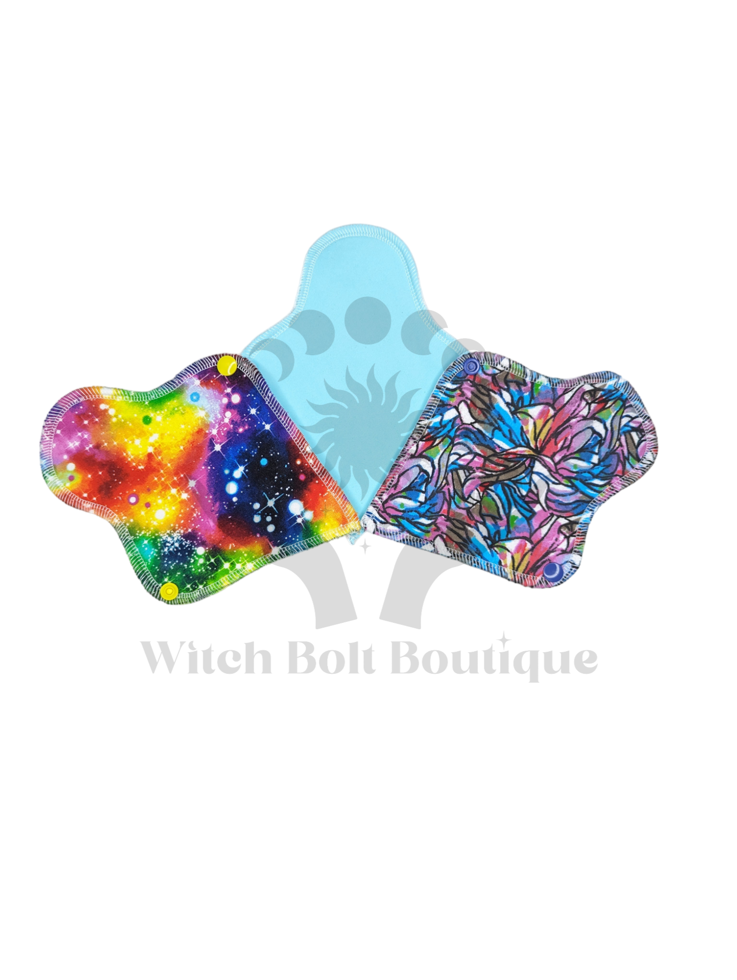 Our liners are intended to be worn with the printed side against your skin and the solid side facing the underwear. All of our products are made by hand. Please keep this in mind as there may be variations in print placement, length, snap color, as well as minor imperfections.